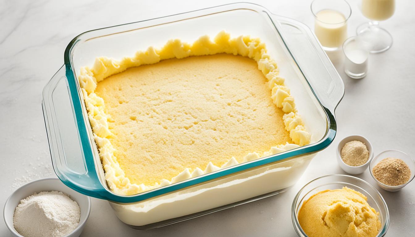 Prepping your pan is also crucial. Grease and flour it for a non-stick surface. This lets the batter rise evenly and avoids unsightly cracks.