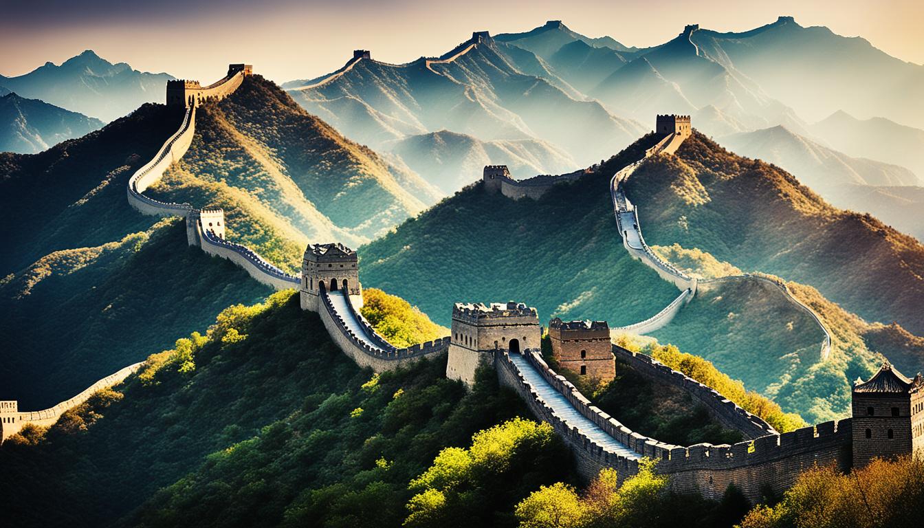 The Great Wall of China is a top landmark that stirs the hearts of millions. It’s a symbol of Chinese history, unity, and pride. This ancient wall has gone beyond its original use as a defense line. It now shows the creativity and strength of the Chinese people.