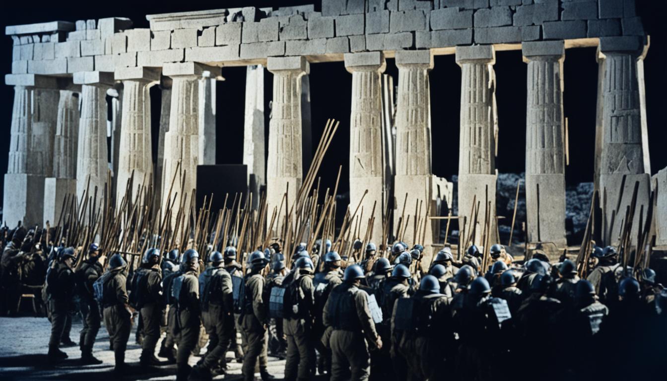 The Trojan Horse tale is a key part of military history. It shows a clever trick used by the Greeks during the siege of Troy. This trick helped bring down the ancient city, making the Trojan Horse famous.